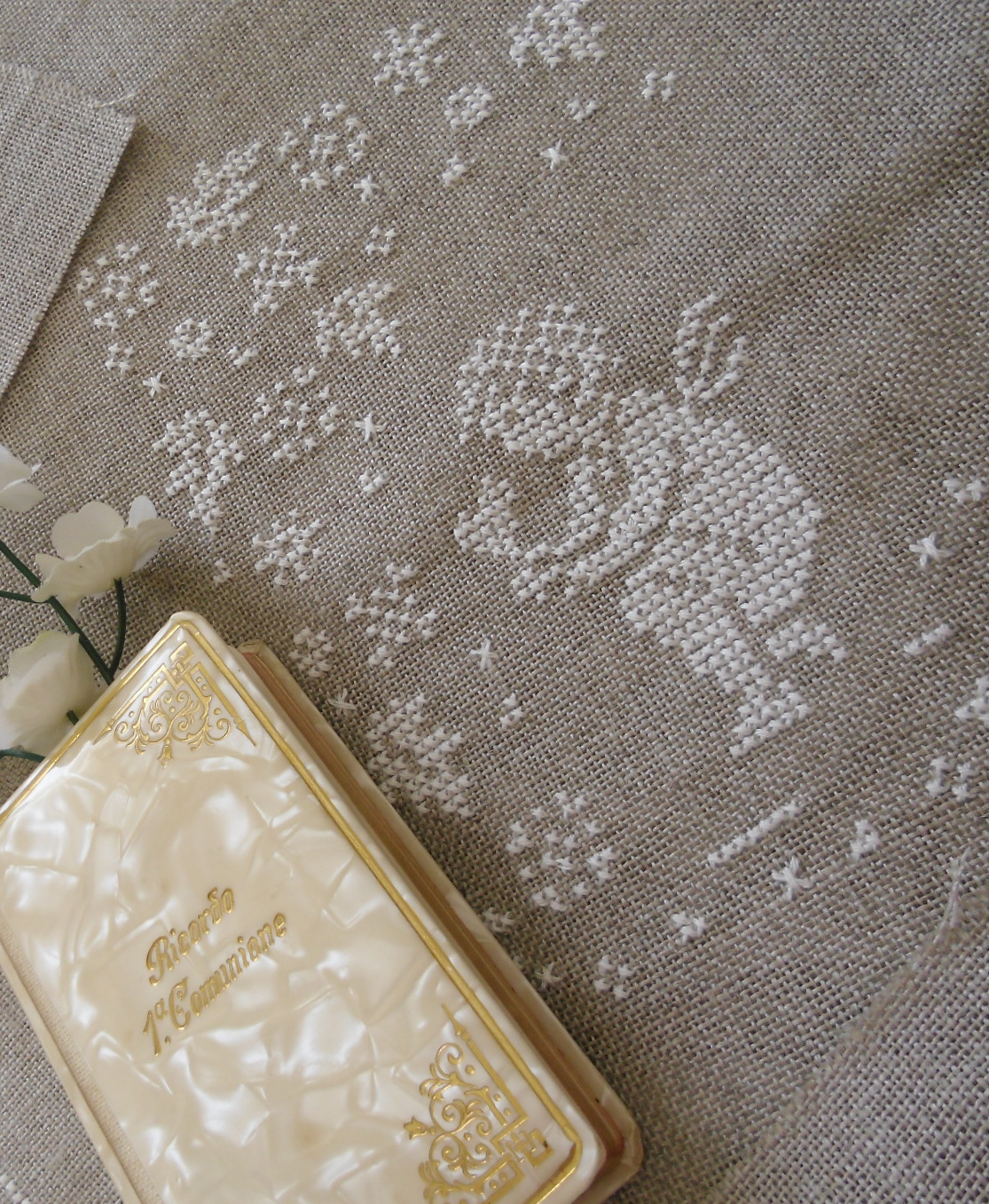 In questo periodo ho finito di ricamare quelle che diventeranno bomboniere per laComunione di Luca, che finalmente (dopo l'intoppo dell'anno scorso!) sarà a maggio.